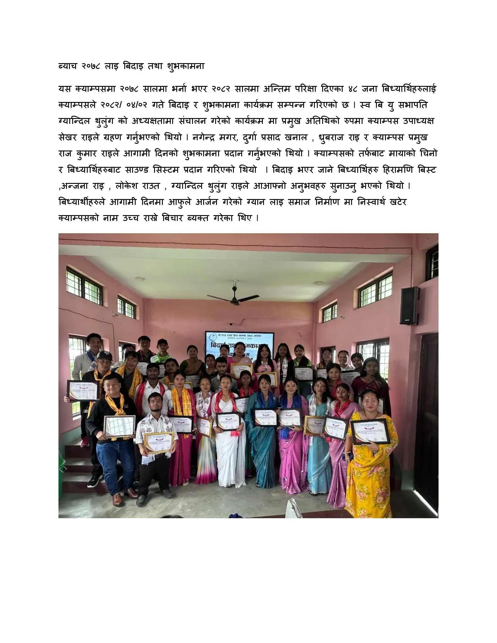 <p>बिदाइ तथा शुभकामना</p>